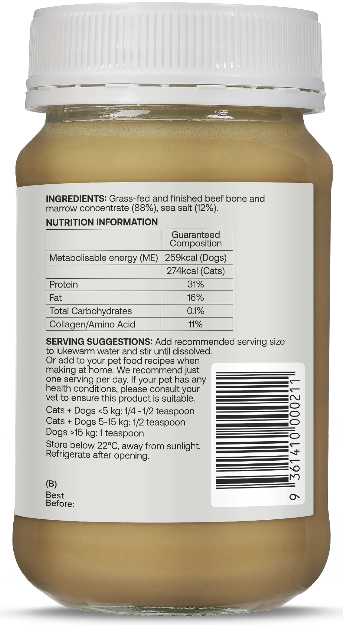 - Made from grass-fed & finished NZ beef bone and marrow concentrate (88%)